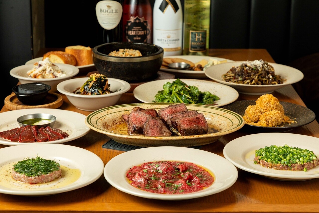 和牛生肉を含む、前菜からメインのステーキ、〆まで当店のこだわり料理が楽しめるお得な飲み放題コース!