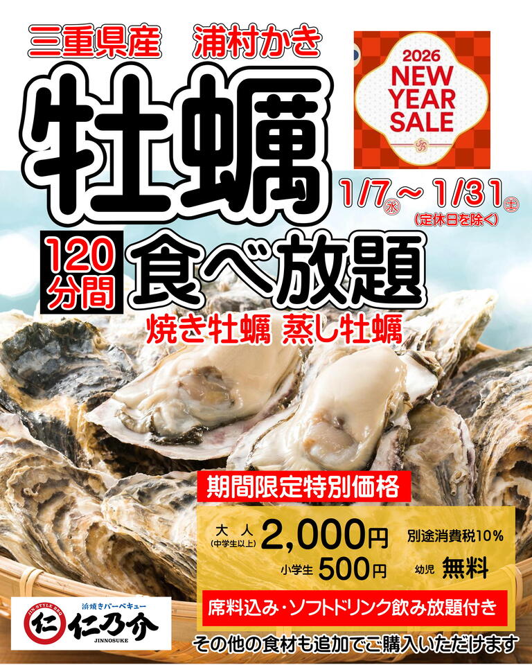 浜焼きバーベキュー 仁乃介およびグループ店からのお知らせを受け取る (不要な方はチェックをはずしてください)