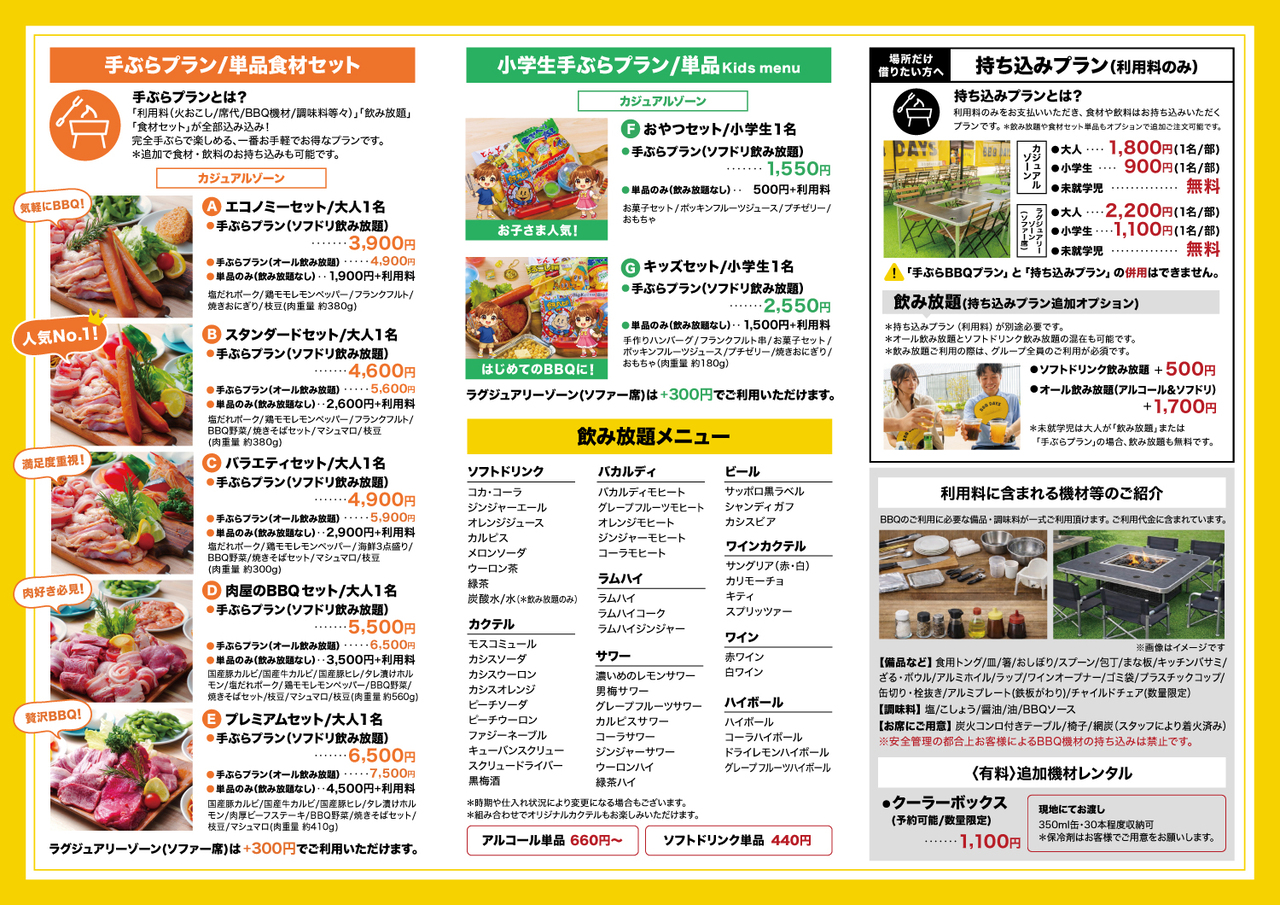 *ご利用条件:20名様以上での『手ぶらBBQプラン』ご利用に限ります