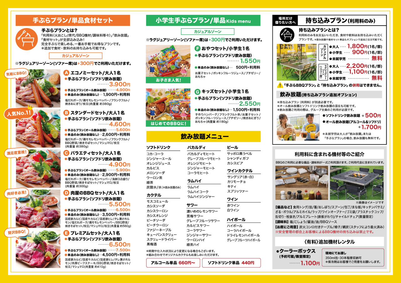 🔴ご利用には「手ぶらBBQプラン」または「持ち込みプラン」のいずれかを、小学生以上のお客様全員分ご選択ください。
