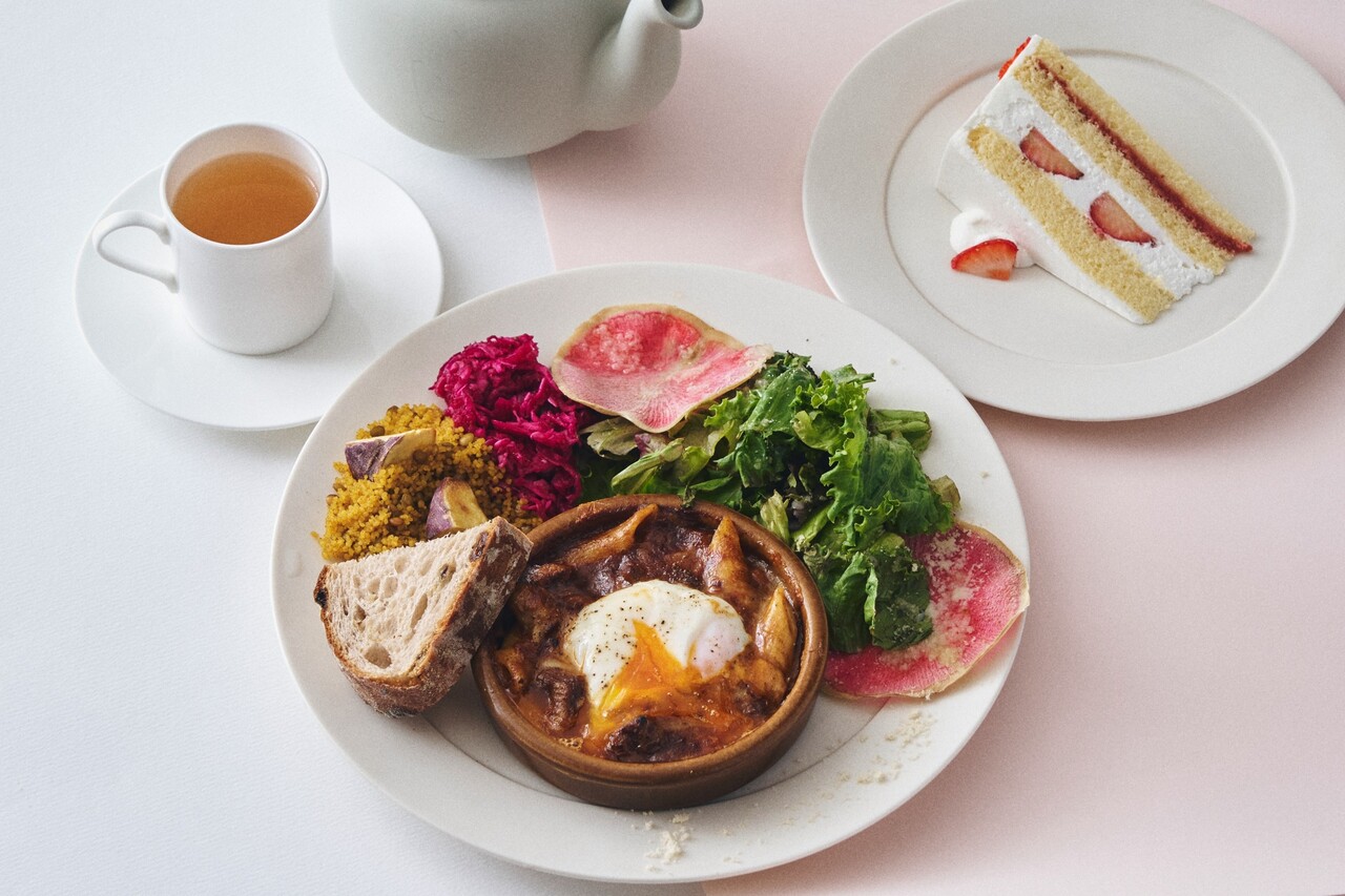【デザート&ドリンク付きのスペシャルブランチ】温泉たまごのビーフシチューグラタン