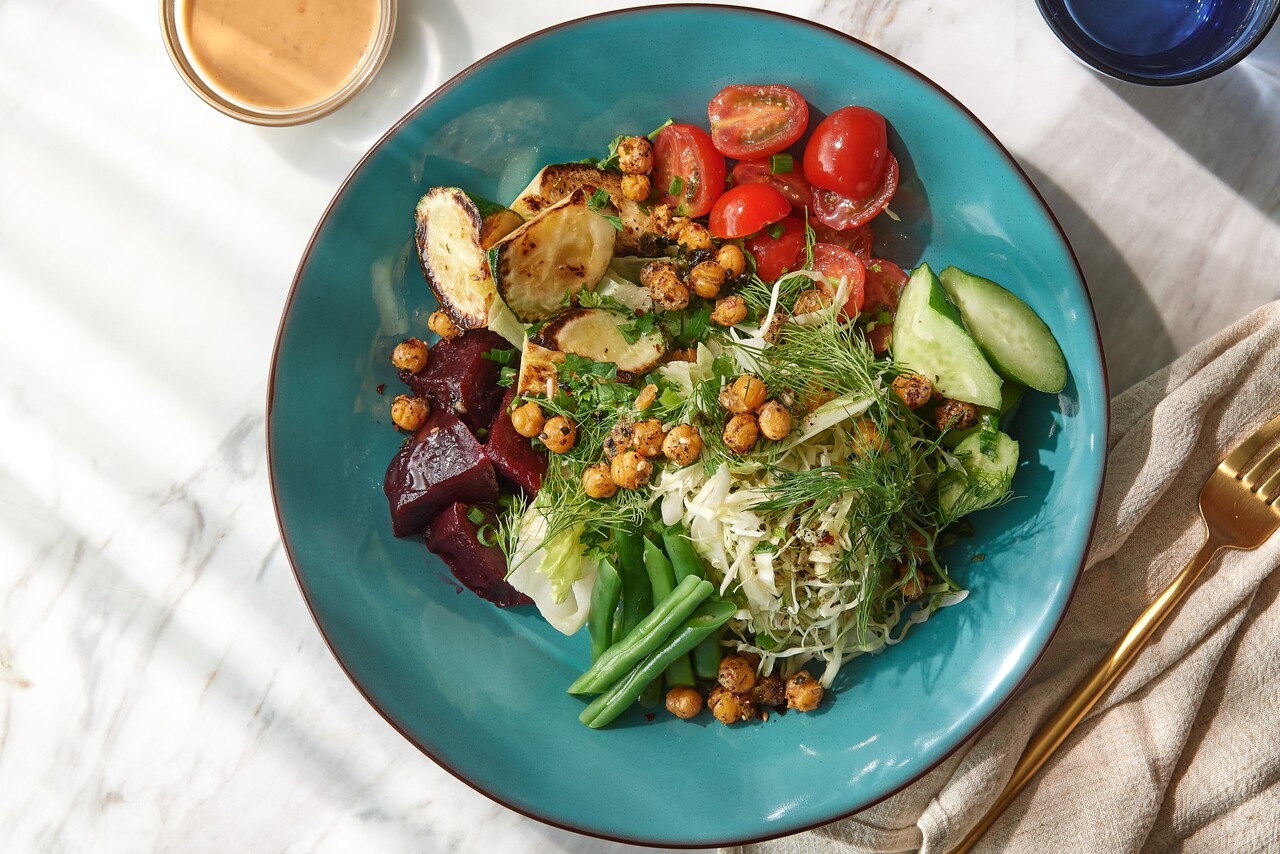【TAKEAWAY】チョップドサラダ - グリーンビーンズ、ズッキーニ、トマト、 キャベツ、ひよこ豆、ビーツ、シトラスセサミドレッシング