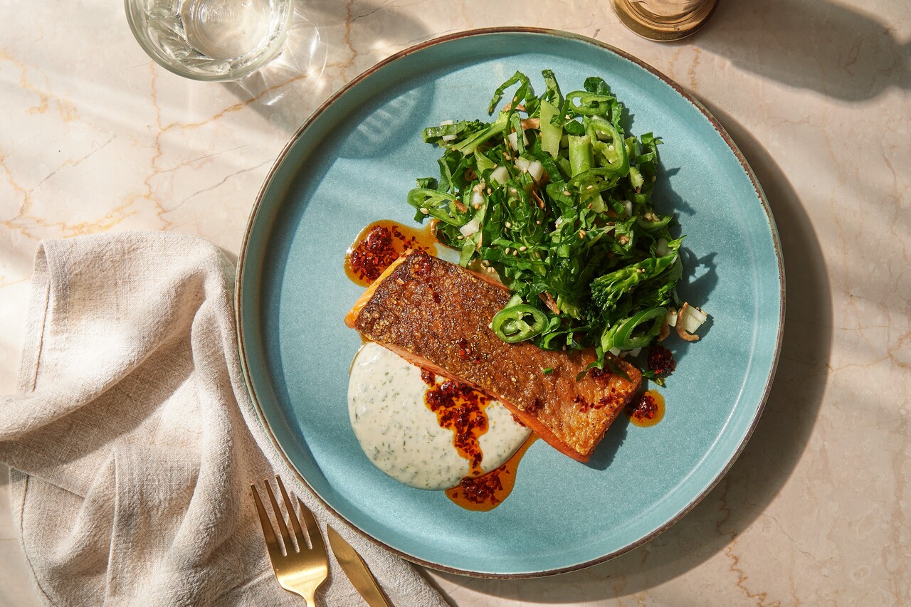 bills green salad, yuzukoshu dressing