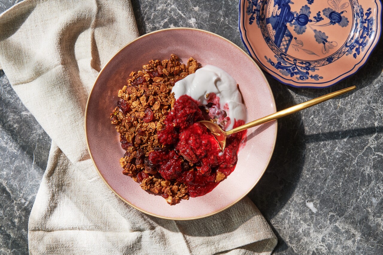 bills vegan granola, fruit compote