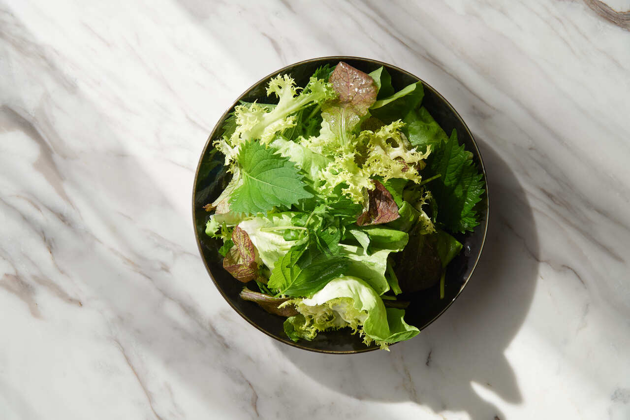 bills green salad, yuzukoshu dressing