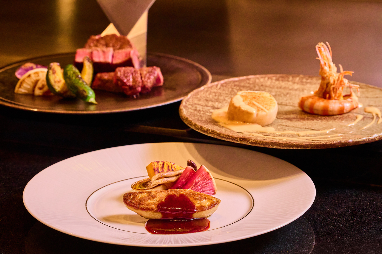 上質な特選和牛と活車海老に加え、フォアグラソテーも味わえる鉄板焼の真髄定番コース