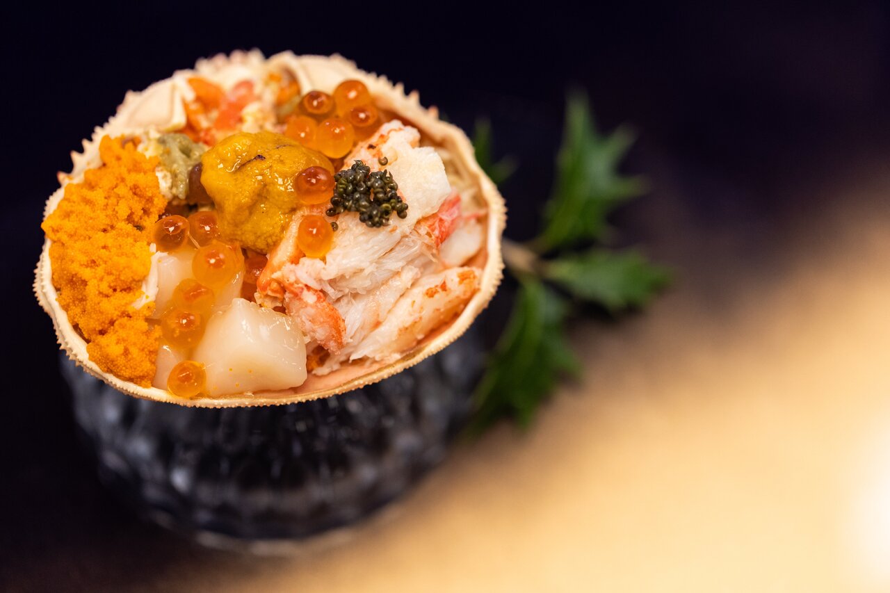 焼き蟹に毛蟹ほぐし、たらば蟹衣揚げや蟹の炊き込み御飯など蟹づくしの京懐石ランチ。