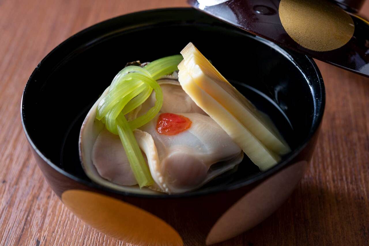 あわび柔らか煮海苔餡掛け
