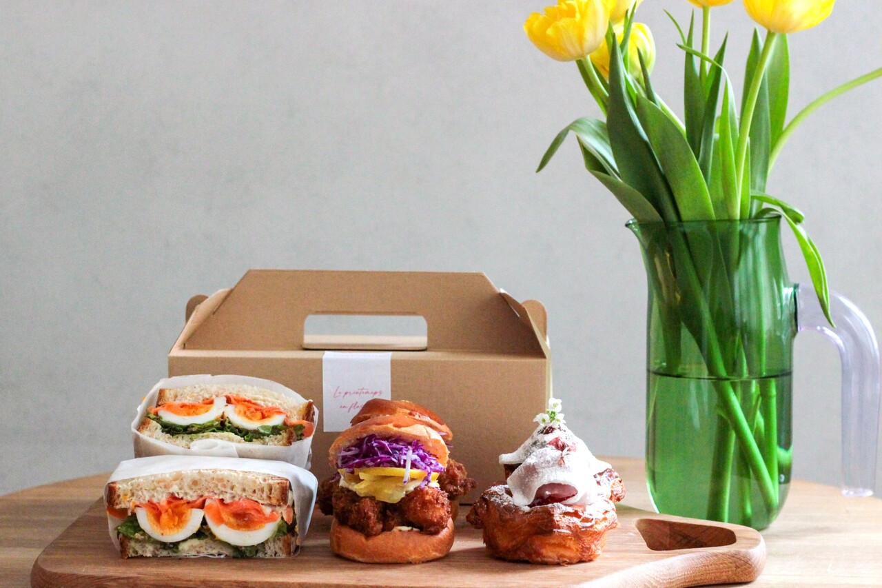 お花見やピクニックなどお出かけにもぴったりの春らしいサンドイッチやデニッシュを詰め合わせた限定Box。