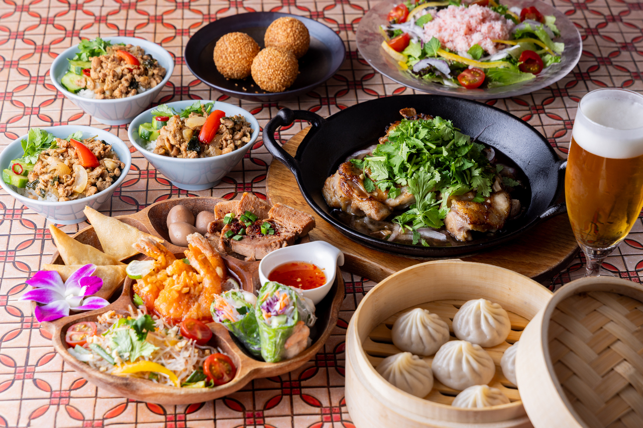 ①『レモングラスチキン』②『薬膳豆乳』」③『トムヤムクン』の3つのうちからスープをお選びください。1~4名様は1種類。5名様以上は2種類お選び頂けます。