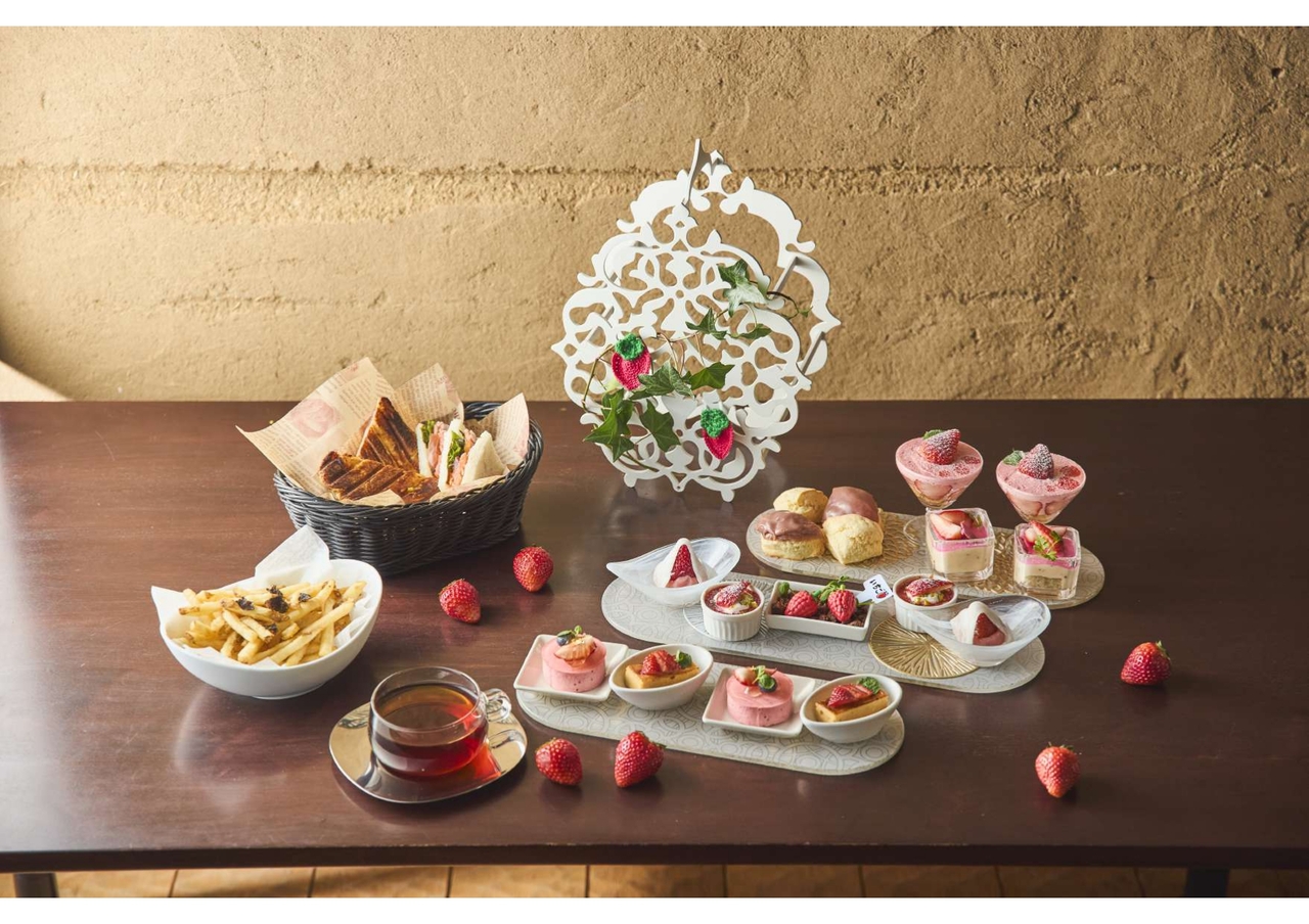 苺とチョコレート、抹茶が織りなす季節限定アフタヌーンティー。華やかな苺スイーツに、スモークサーモンのキッシュやトリュフ香るポテトなどのセイボリーを添え、甘さと塩味のバランスを楽しめる優雅なティータイムをご提供します。