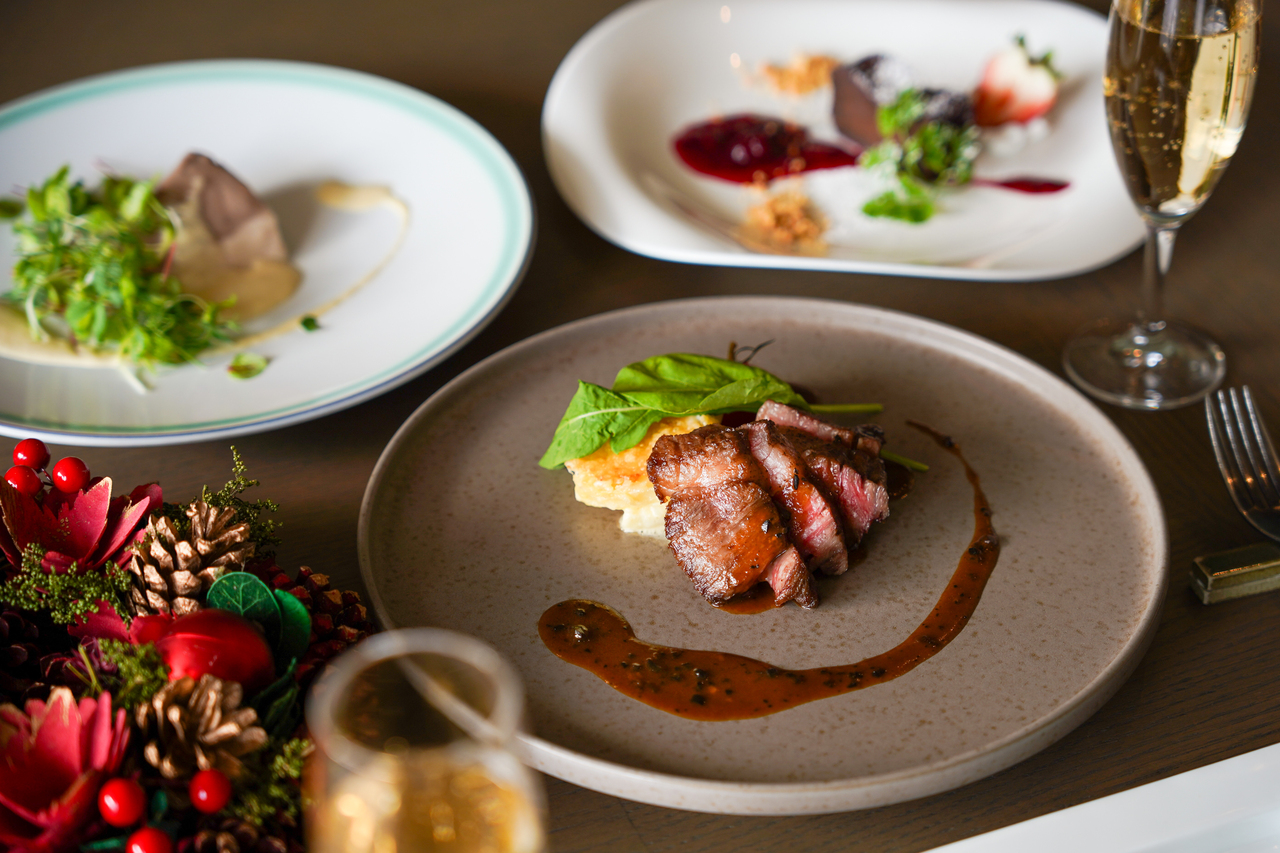 【クリスマスディナー2025★メインフロア席|乾杯酒付】Xmasを彩る 肉魚のWメインに特製Xmasデザートなど全6皿(12/20限定)