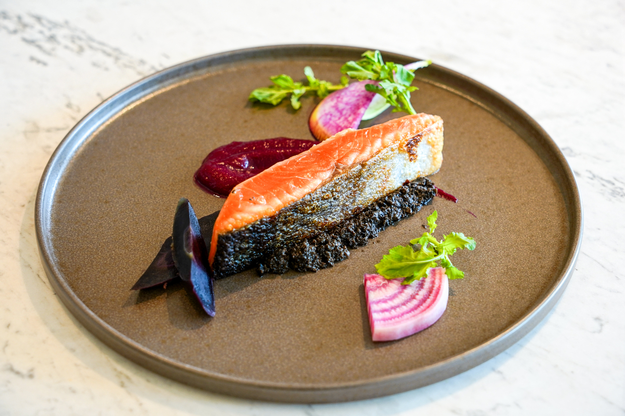 【魚料理】カンパチのヴァプールとズワイガニのフリット ソース・ヴァンブラン