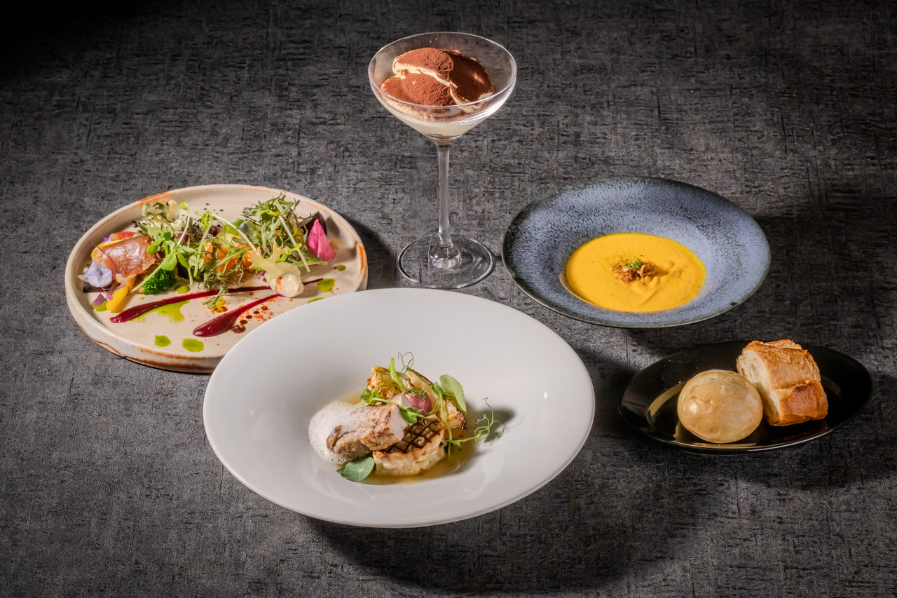 海老とホタテを焦がしバターで香ばしく絡めたMSCプレートと、柚子がふわりと香るクリーミーなホワイトソースをまとった、真鯛を使用したASCプレートの2種類のシーフードをお楽しみいただけるランチコースです。前菜&スープ&パン、デザート付。