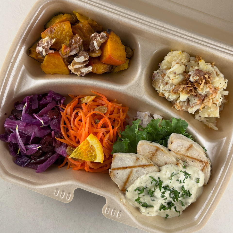 ヘルシーな前菜と主菜で構成された二段重(2,3名分)となります