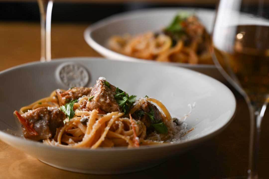 契約農家から届く旬野菜の前菜盛り合わせと、グリップ自慢のパスタ、メインまで召し上がれる贅沢なコース。