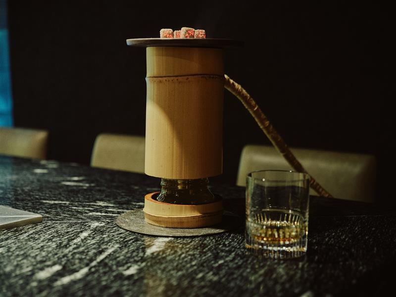「吸うお茶」という新感覚の嗜好体験。水タバコ(シーシャ)の原理を用いて茶葉のみを使用した喫煙体験。お茶の香りを吸いながら、お好きなお酒をお召し上がりください。