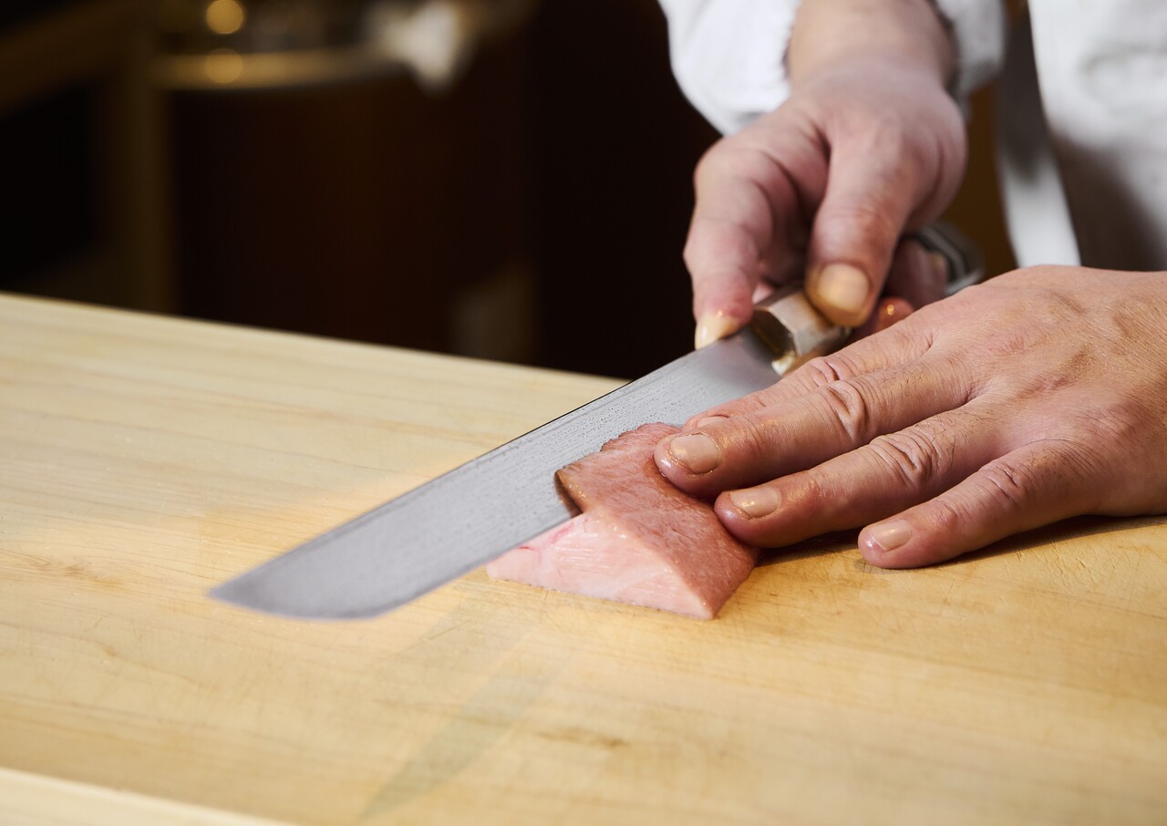 シェフズテーブル「紅葉(こうよう)」がお届けするのは、選び抜かれた良質な材料を前面に打ち出した、どなたにも心からご満足いただけるメニューです。大人の社交場に相応しい空間で、目の前で繰り広げられる調理に会話も弾みます。