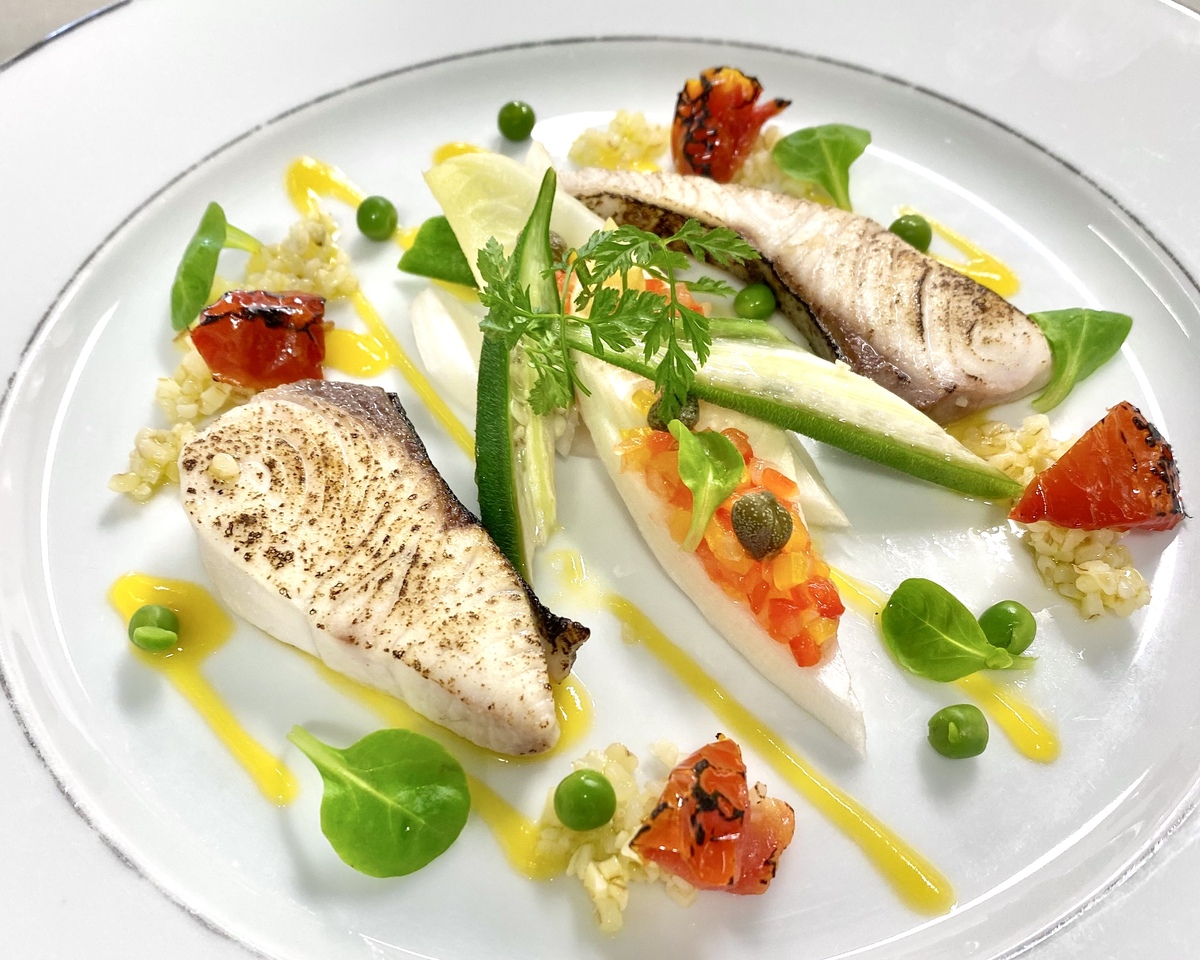 ●カンパチの炙り焼き 彩色野菜のサラダ仕立て