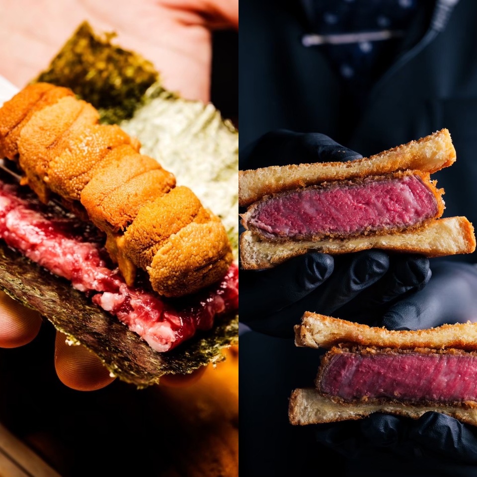 「雲丹2列の厳選和牛の雲丹ユッケドッグ 〜淡雪塩〜」「特選ヒレブリオッシュカツサンド」「人生を変えるヒレ」「新ちかみつ飯 ~和牛・いくら・雲丹・蟹~」をお召し上がりいただけます。