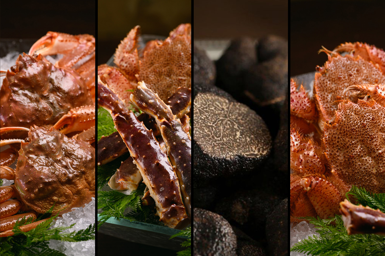 白トリュフ、キャビア、毛ガニといった珠玉の食材が饗宴の舞台を彩ります。