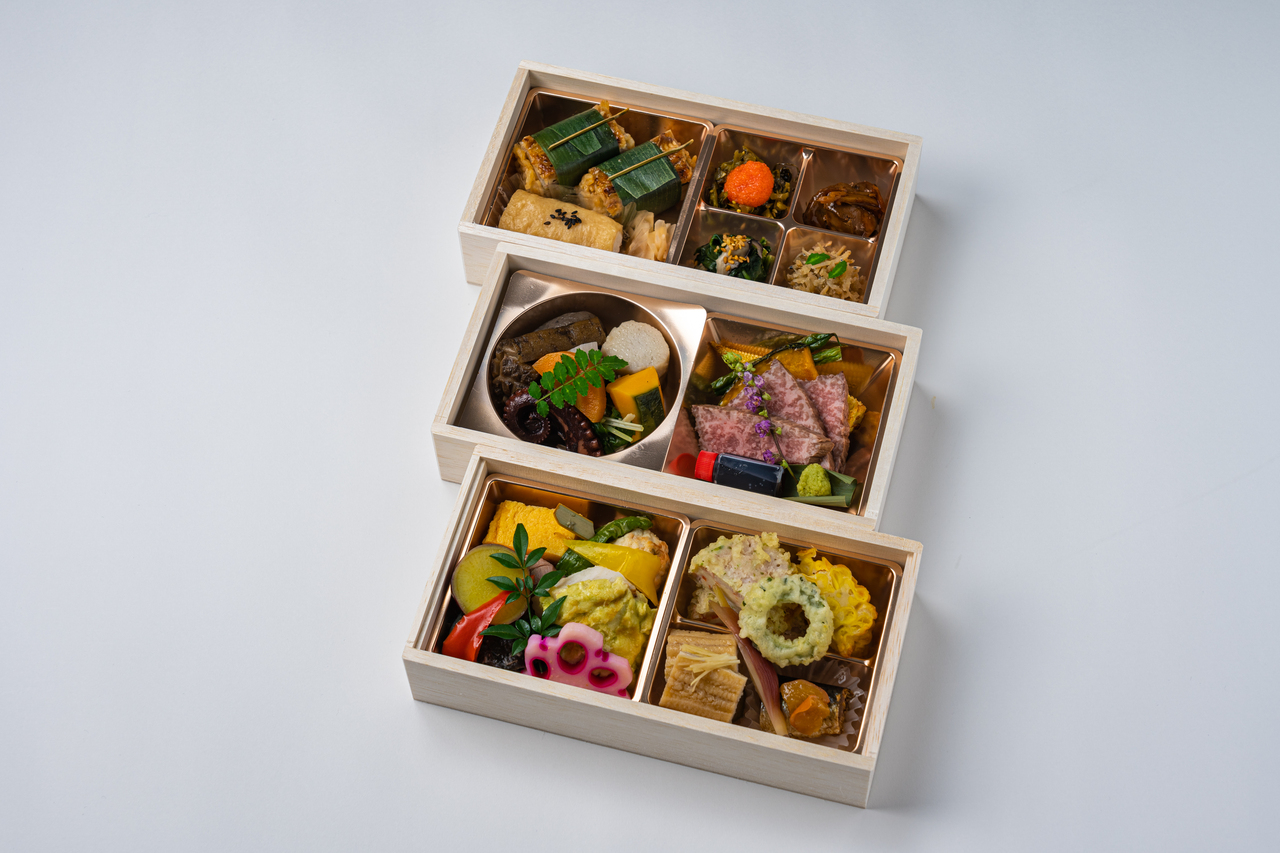 季節の野菜を取り入れ、博多廊らしい贅沢な三段重。