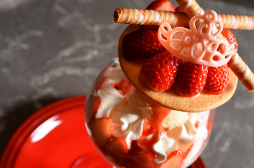 苺の瑞々しさと、とろける口どけ。艶やかな赤が函館の冬に華やぎを。大人のためのモダンストロベリーパフェ。