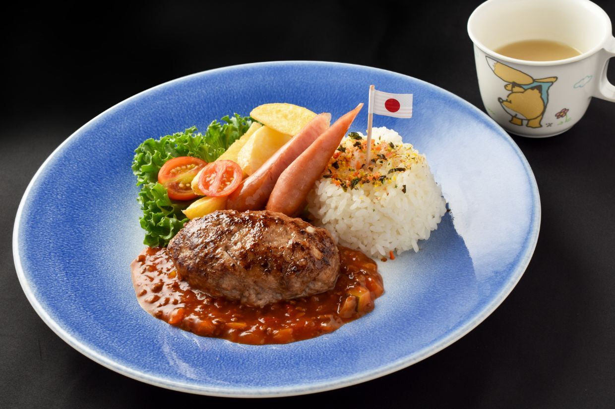 ハンバーグには、卵・小麦・大豆を使用しています。