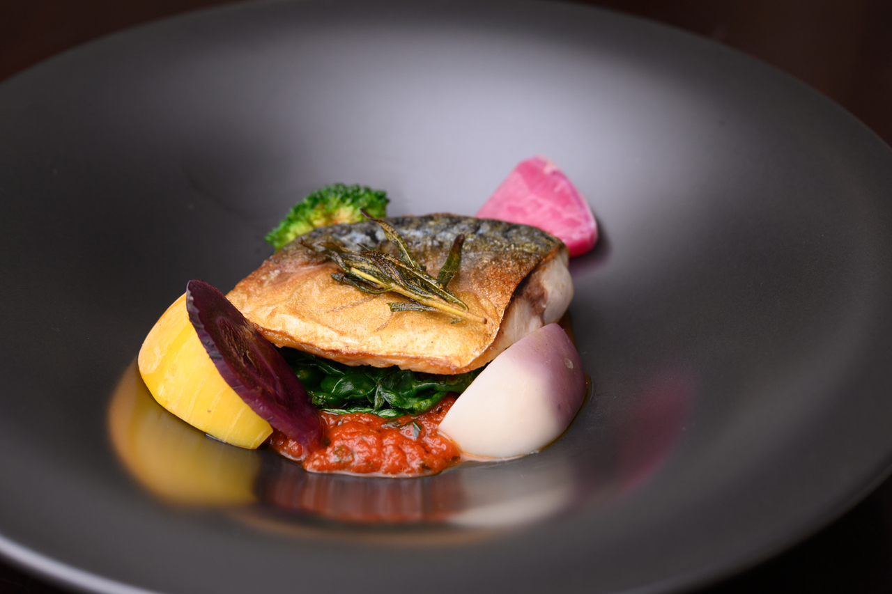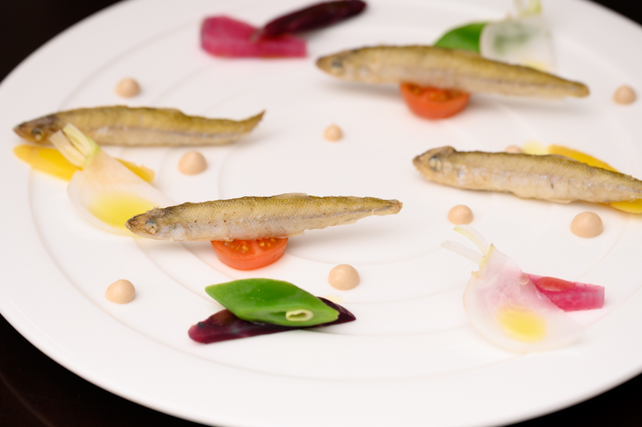 旬魚の瞬間燻製 柚子ヴィネグレット