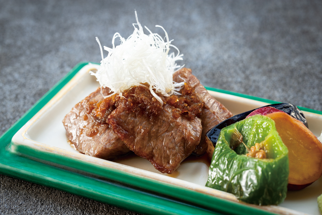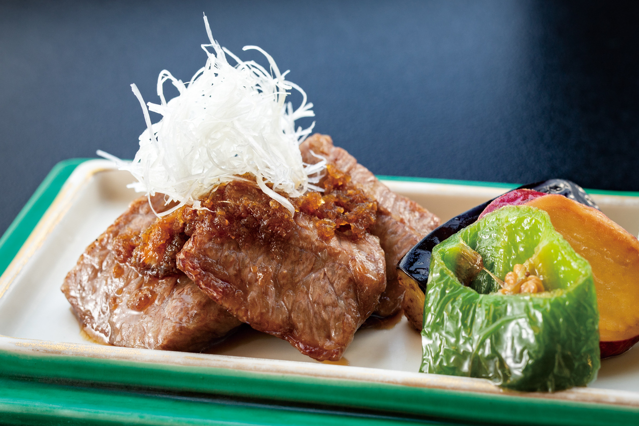 焼物 葉山牛と筍はさみ焼き または 伊勢海老と筍、鯛の山菜あんかけ