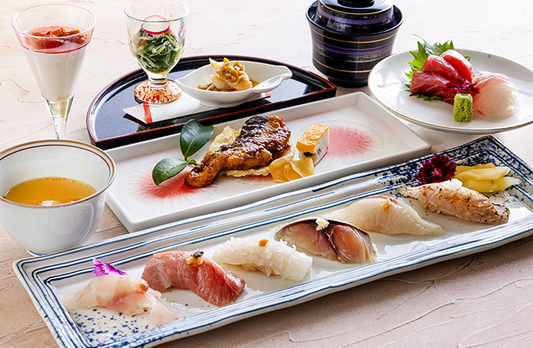 地上123mの絶景を眺めながら至福のひとときをお過ごしいただく、和の美しさをテーマにしたアフタヌーンティー風寿司ランチ。料理長こだわりの華やかなお寿司とスイーツが楽しめる特別なランチです。