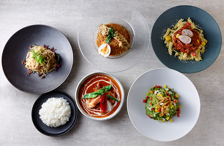 彩り豊かな日替わりサラダとこれまでの人気メニューに加えて秋の食材と京都スパイスを使用したメニューからメインディッシュをお好きな一品をお選びいただけるランチセットと五感で楽しめる秋の味覚満載のコース料理をご用意いたしました。