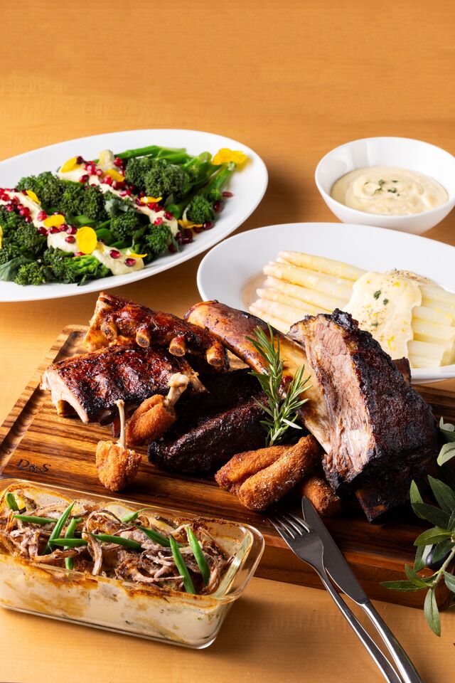 地元の農家から届く新鮮なサラダが揃う「天下の台所サラダステーション」をはじめ、前菜、ローストメニュー、アジアンディッシュなど約40種のセレクションが食べ放題。ペストリーシェフによる人気のデザートの数々も満喫いただけます。