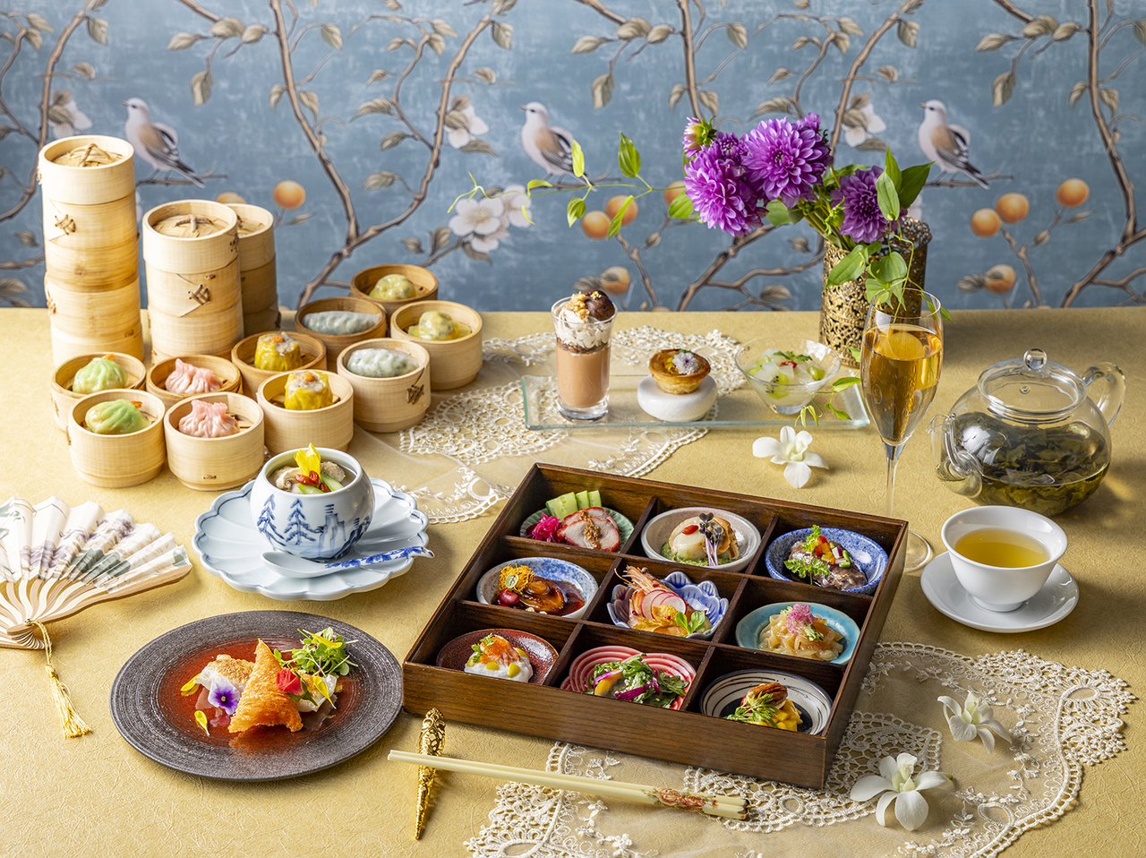 美に対する強いこだわりを持ち、食や香りにも深い関心を寄せていたとされる楊貴妃の世界観を表現したランチプラン。全9品をひと皿ずつ丁寧に仕上げました。さらに、コラーゲンたっぷりの特製スープや3種類のデザートもセットになり、7種類の点心はお好きなだけお楽しみいただける贅沢な内容となっています。
