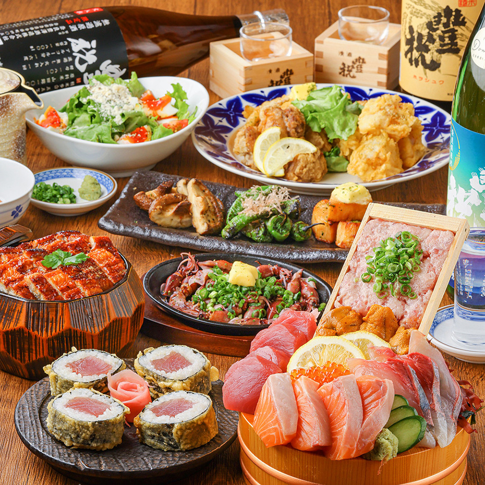 【魚メイン】お造り5種盛り&生マグロ天、鰻飯など鮮魚尽くしプラン!計11品4,800円(飲放込)