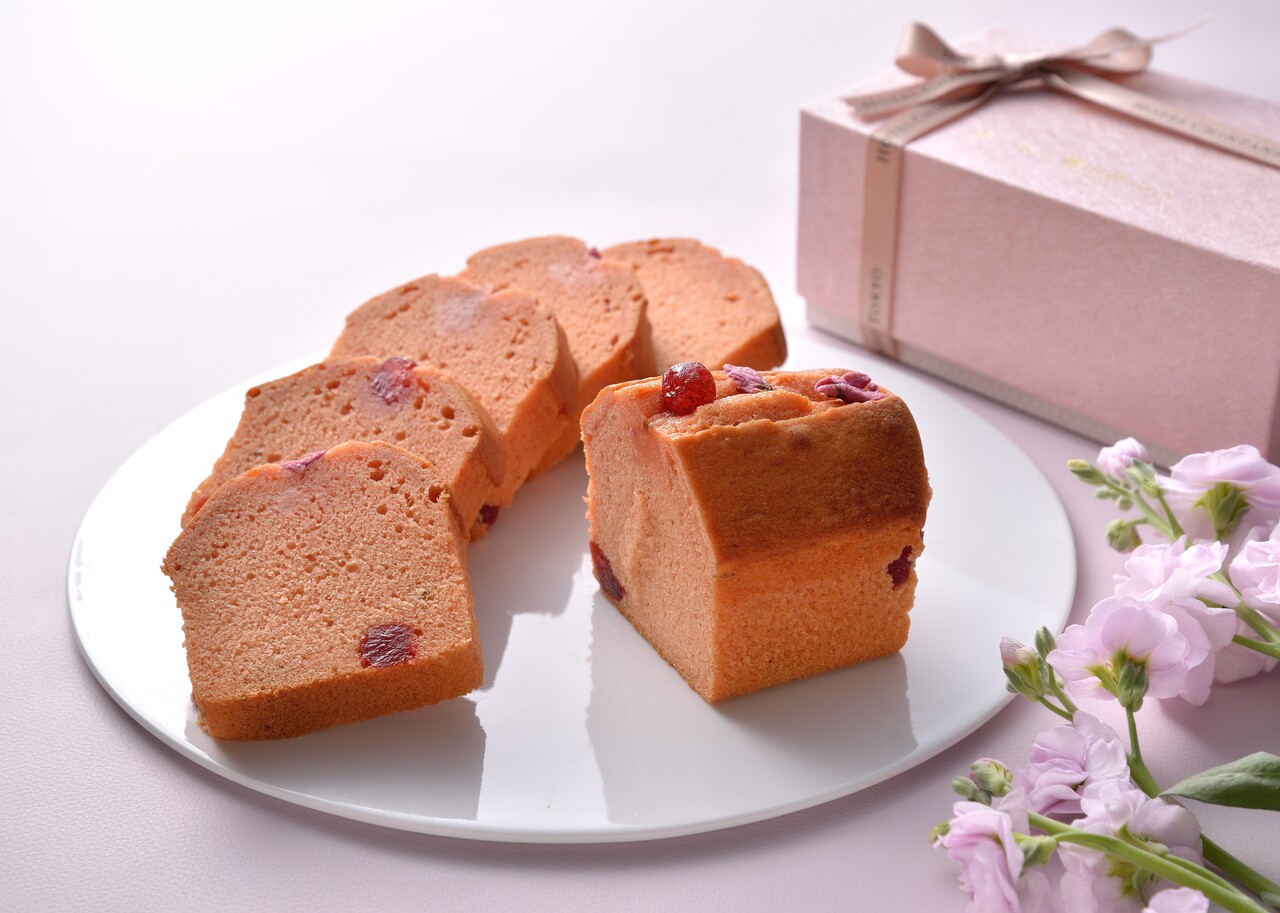 ふんわりと桜が香るしっとりとした口当たりのパウンドケーキです。桜あんのやさしい甘みといちごのマリネのほどよい酸味をお楽しみいただける一品です。春ならではのマリアージュをご堪能ください。(期間限定:3/1~4/30)