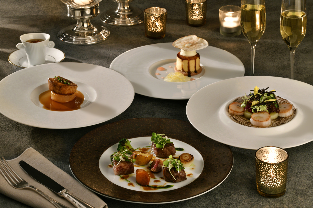豪華客船ノルマンディ号をイメージしたレストランで、ホテルニューグランドの伝統的なフランス料理に 料理長 花木洋一郎がアレンジを加えたこだわりのコースをお楽しみください。
