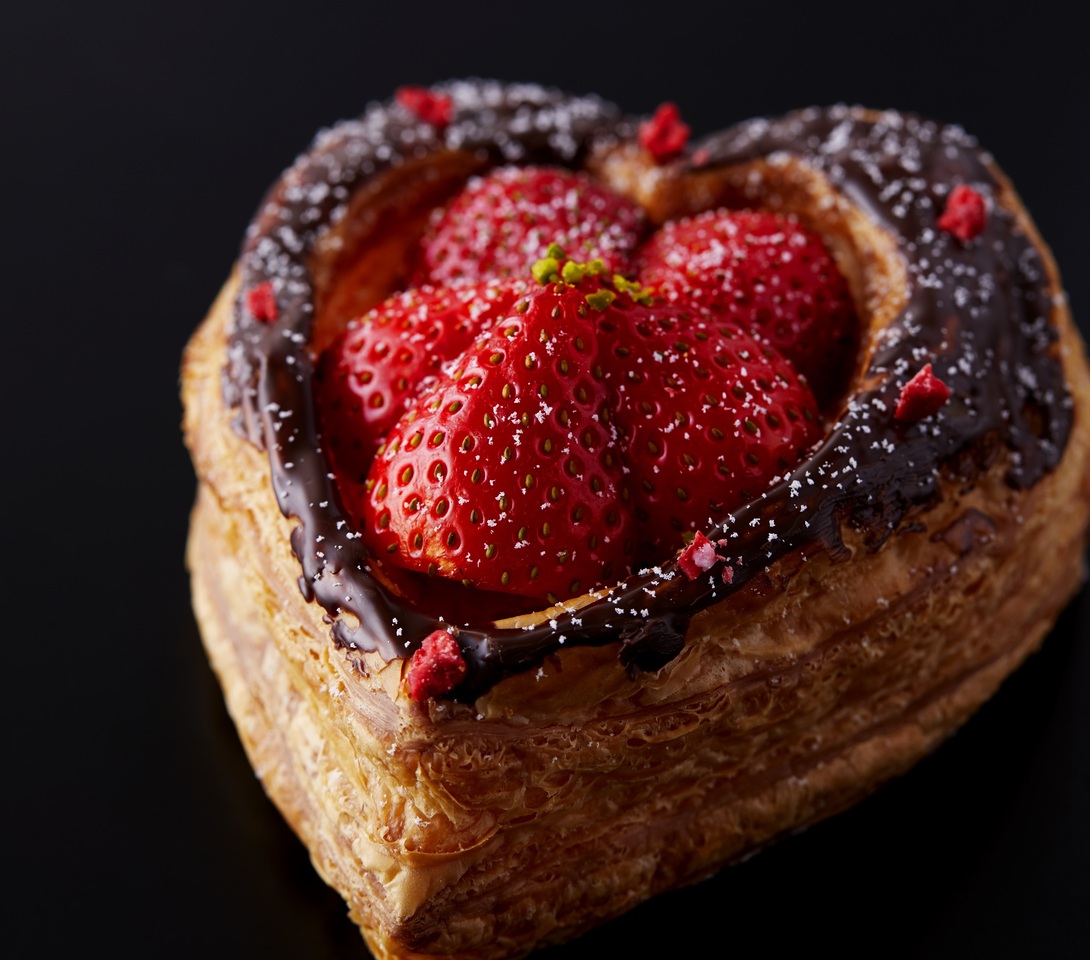 チョコチップを練り込んだハート形のさくさく食感が楽しいデニッシュパン。