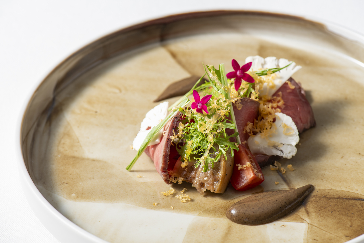 フランス料理の伝統に和のエッセンスを掛け合せた、個 性的な「京フレンチ」をご提供します。調味料から野菜 まで地元食材を取り入れるとともに、シェフおすすめの上 質なお肉料理からお酒に合せるおつまみメニューなどを 様々なシーンでお楽しみいただけます。