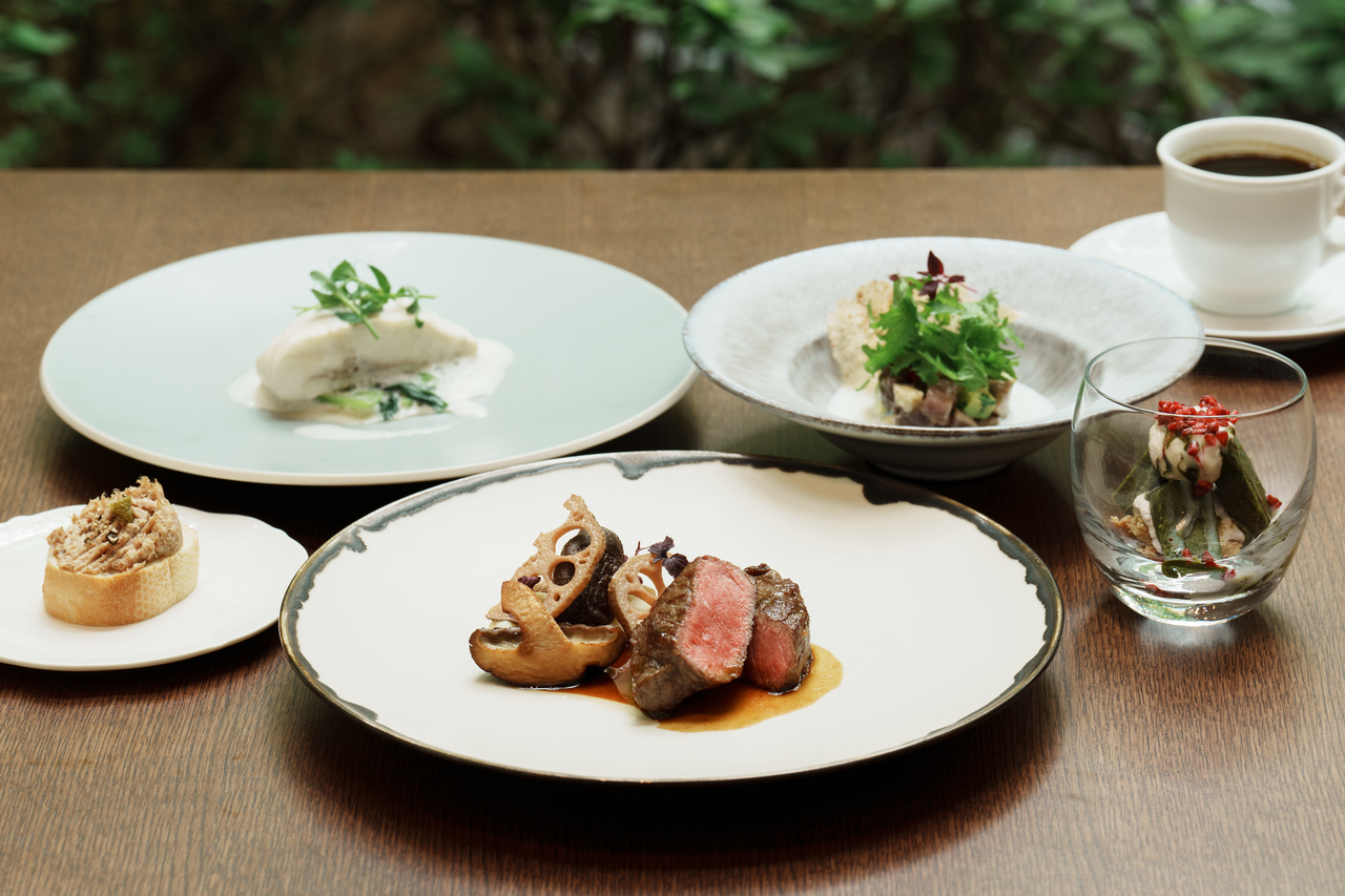 季節の恵みを取り入れた前菜や、魚介や出汁の旨味を活かしたひと皿、香ばしく焼き上げたお肉料理など、和の風味をさりげなく添えたカジュアルフレンチのフルコースをお楽しみください。本ページからのご予約限定で、期間限定の特別価格にてご提供いたします。