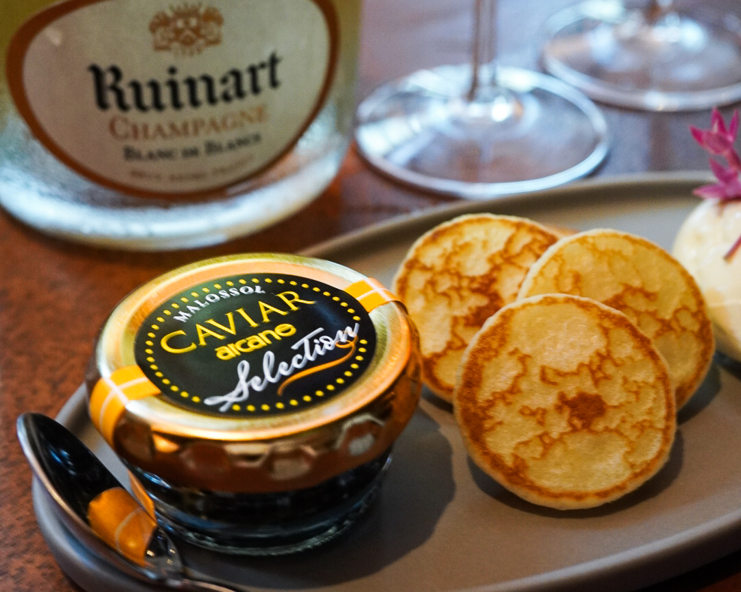 世界最古のシャンパーニュ Ruinart Blanc de Blancに三大珍味のキャビアがついた特別プランでございます。