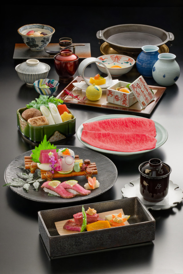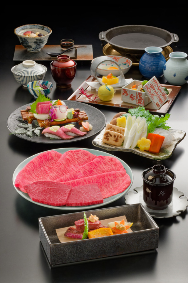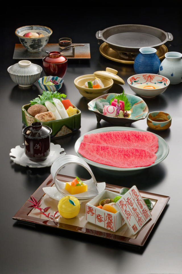 木の芽の香りとともに春の味覚「新筍」と黒毛和牛「ロース」と「ヒレ」のすき焼をお楽しみください。