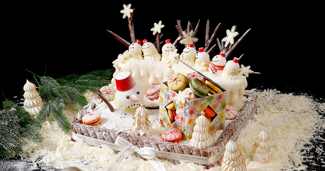 ホワイトシェービングチョコレートで粉雪が舞っているホワイトクリスマスをイメージしたショートケーキは、軽さとコクを合わせ持つ生クリームとふんわりとしつつもしっとりとした弾力のあるスポンジが特徴です。