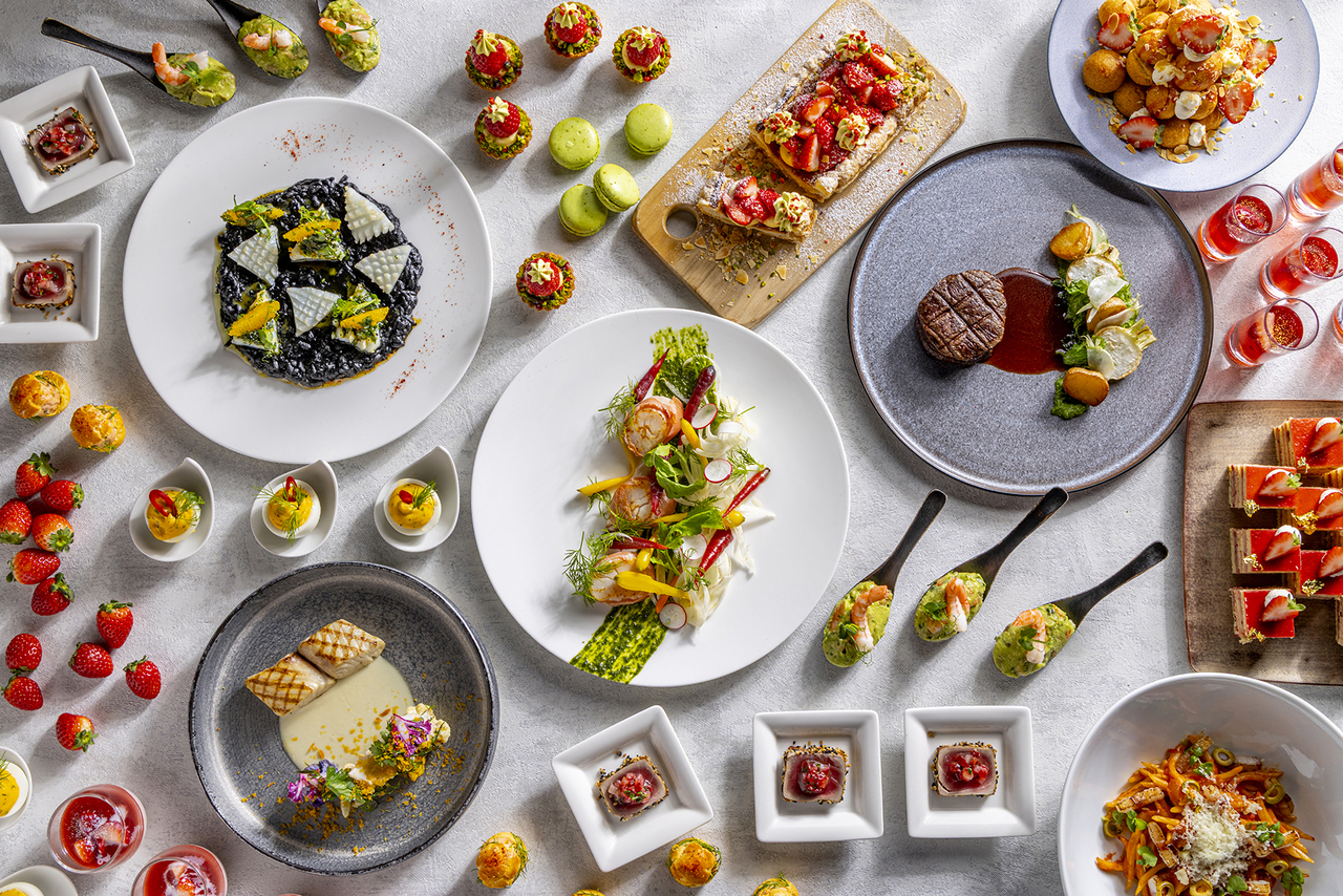 ① サプライズにぴったりのメッセージ付デザートプレート:1,100円(サービス料別)※デザートやフルーツの盛り合わせプレートとなり、メニューは季節により変わります。