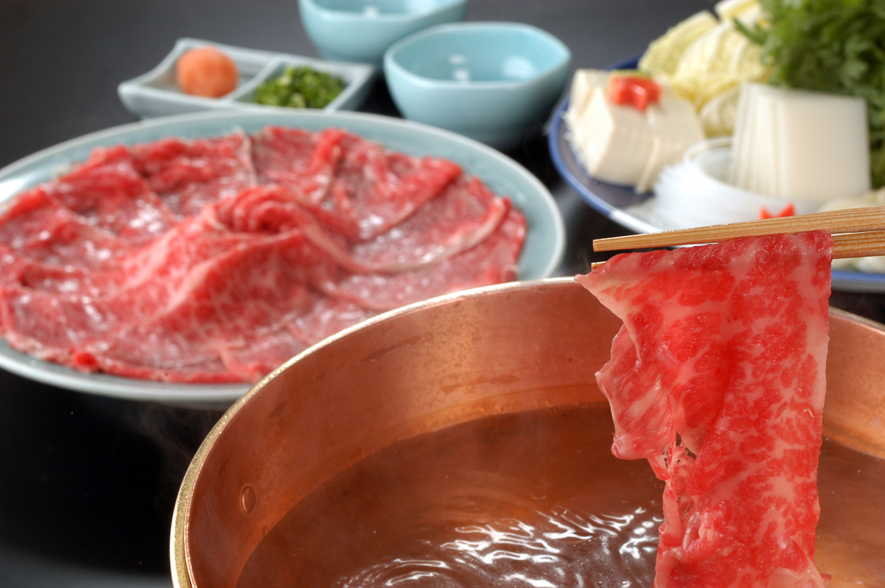 国産黒毛和牛や、白菜、白葱、ハンダマ(水前寺菜)、豆腐などの食材を特製だしでお召し上がりいただくしゃぶしゃぶです。