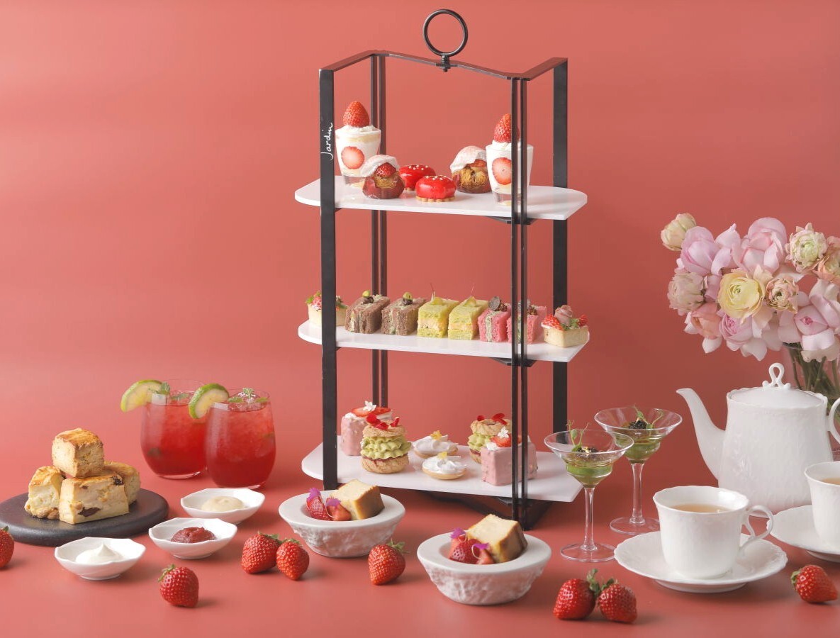 旬の国産苺を贅沢に使用したアフタヌーンティーをご用意いたしました。ふわふわのスポンジに軽やかなシャンティクリームを合わせたショートケーキをはじめ、ピスタチオや季節のフルーツを取り入れた彩り豊かなスイーツ、さらに冬ならではの味わいを楽しめる2種のスコーンをお楽しみいただけます。