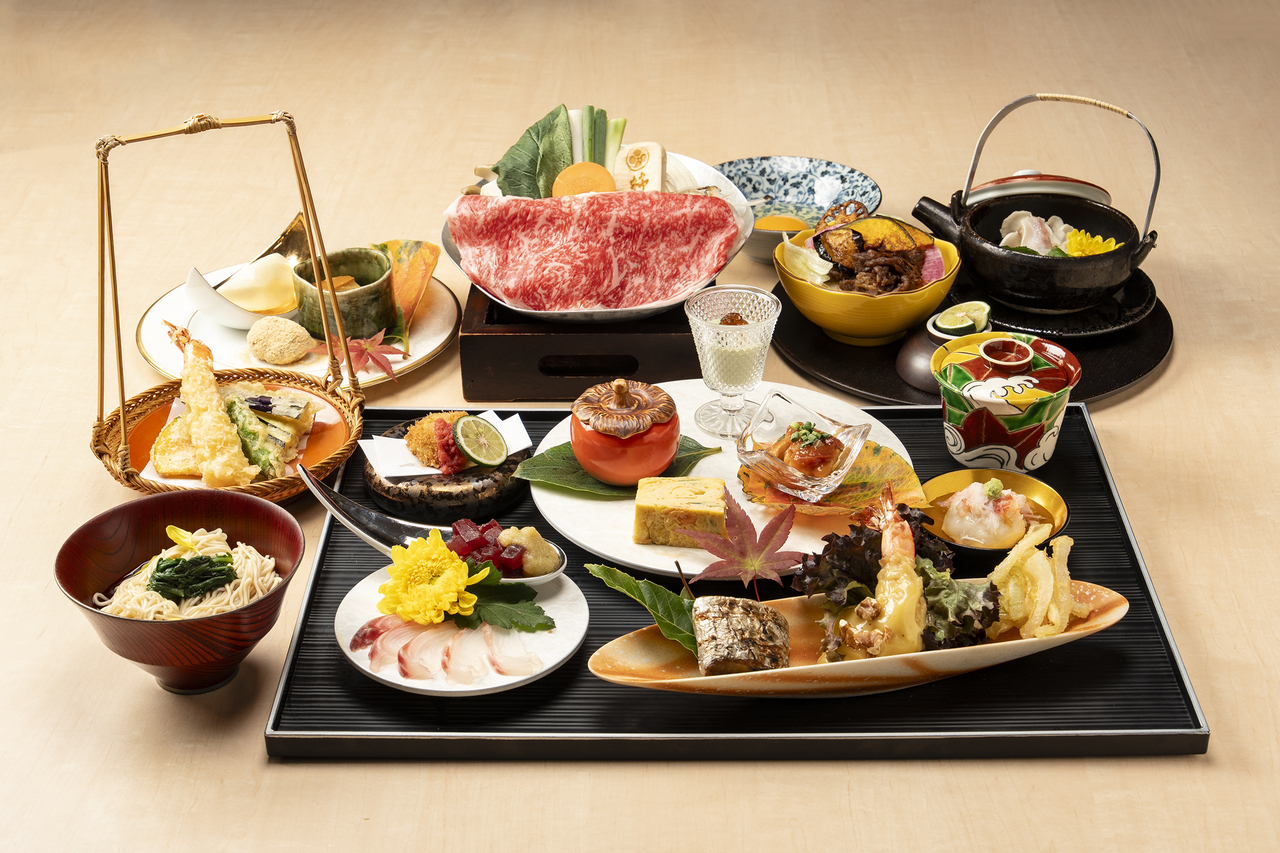 季節の前菜を含んだ日本の四季を感じられるすき焼のコース