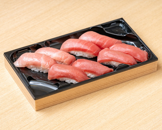 本まぐろ大とろ2貫、本まぐろ中とろ2貫、本まぐろ赤身4貫