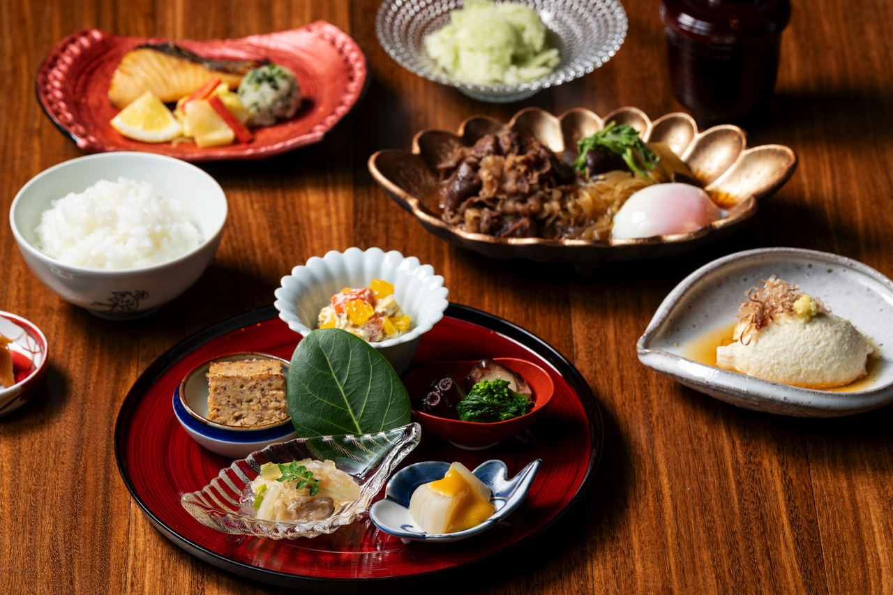 八寸、小鉢、主菜、御飯、味噌汁、香物、甘味
