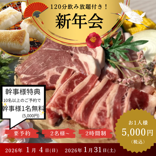 ▶【1月中食材付き手ぶらプランご予約のお客様は、1人1個切り餅つきます!】